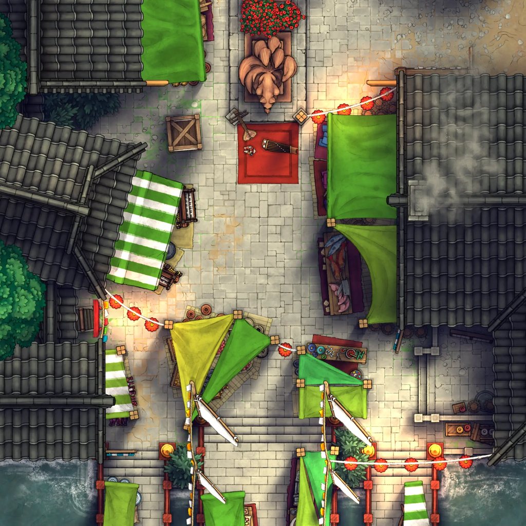 - This map's street edges are fully compatible with & connect to the rest of DnDungeon’s Modular Asian City tilesets & maps!