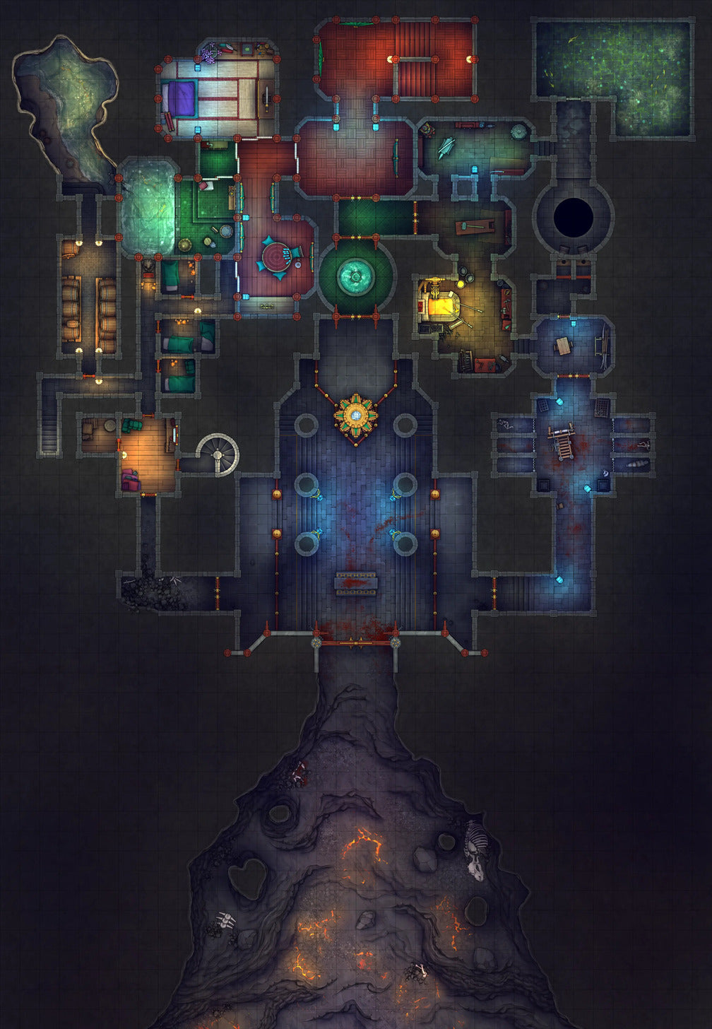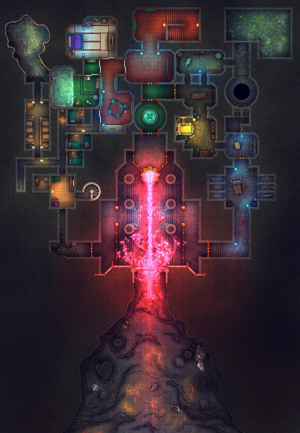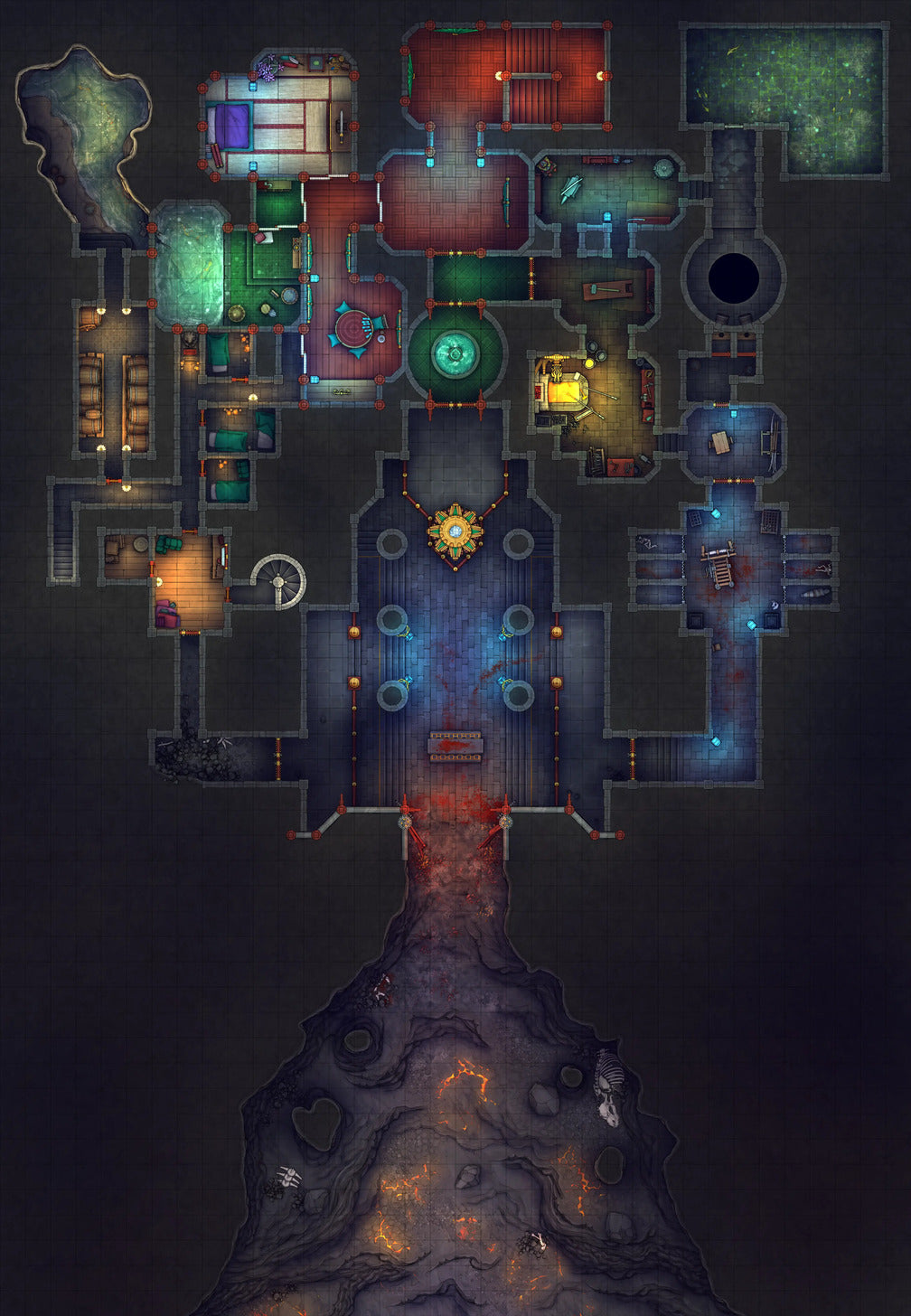 - If sneaking around’s your players’ thing, try planting a path for an infiltration through the well. Alternatively, you could use the pentagram north of the throne room as a teleportation circle & warp them in that way.