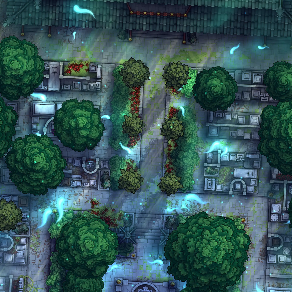 - Urban Graveyard: A temple’s graveyard, lined with marble monuments & tombstones to honor the deceased!